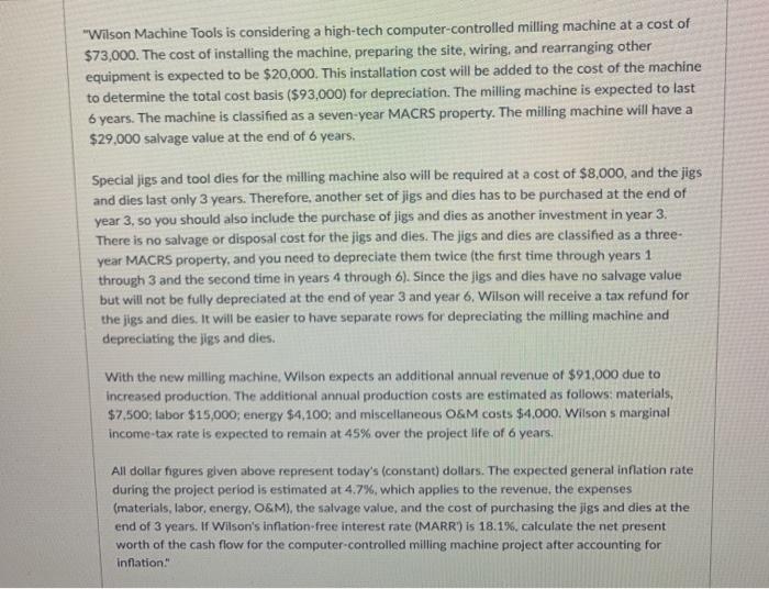 Solved Wilson Machine Tools Is Considering A High Tech Chegg Com